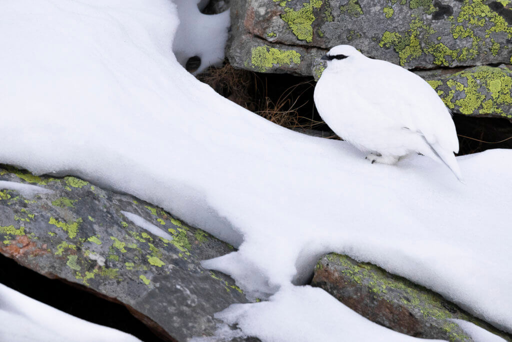 Dopo qualche passo, un elegantissimo maschio di pernice bianca vola a pochi metri da me con un veloce frullo d’ali prima di scomparire, ripagandomi di tutto l’impegno e la fatica fatta e regalandomi una delle emozioni più forti che ricordo di aver vissuto in natura.